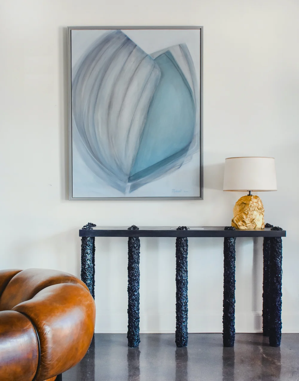 The body of work titled Elements addresses the simplest elements of form. In this series, Cobie Russell draws structures and color from the natural world. The series Elements is inspired, in part, by some of the playful energies of the mathematics of Ramanujan and the physics of Bernoulli.