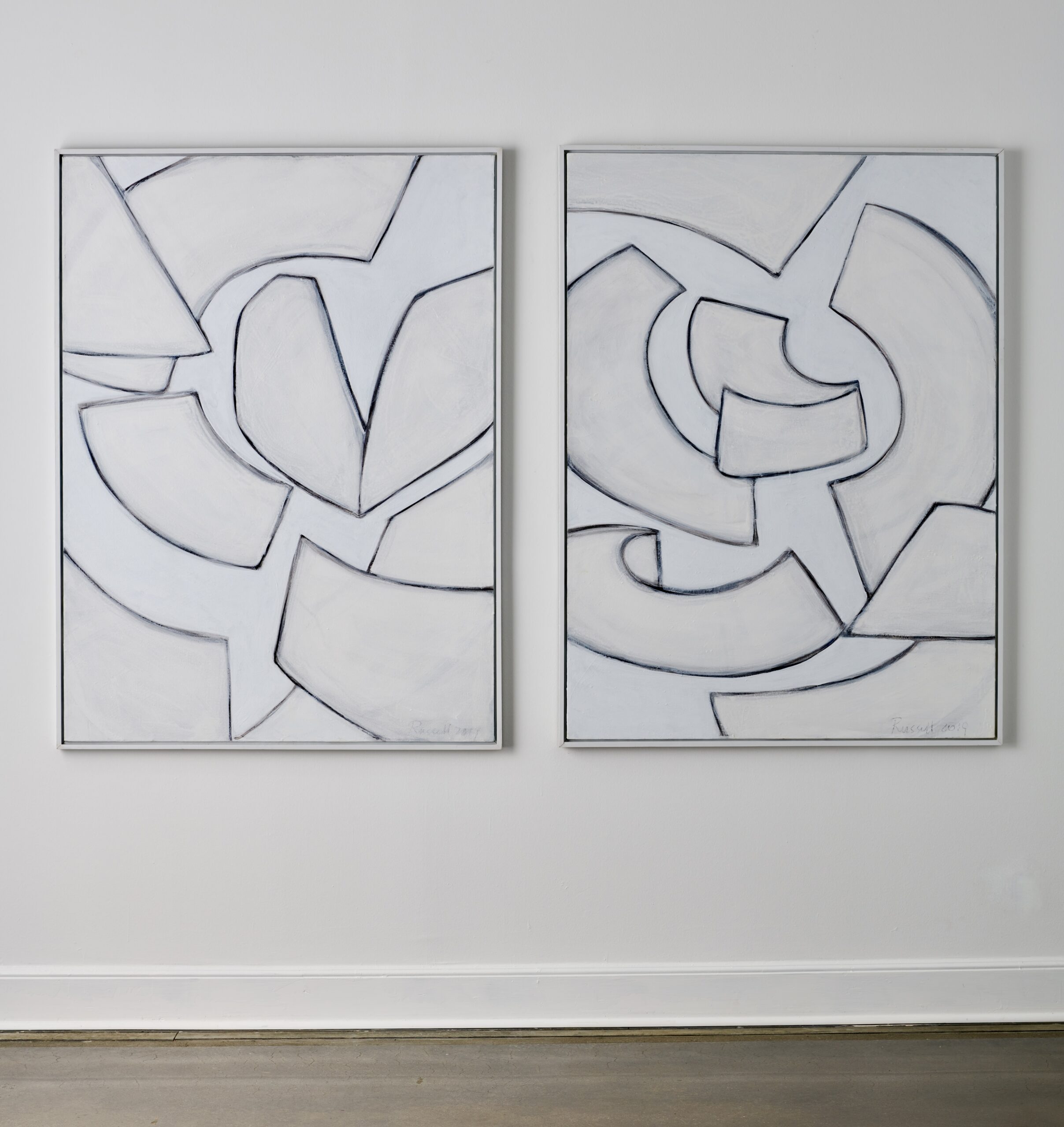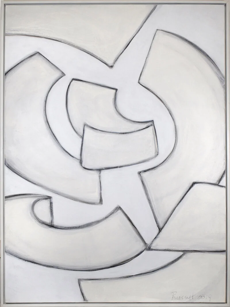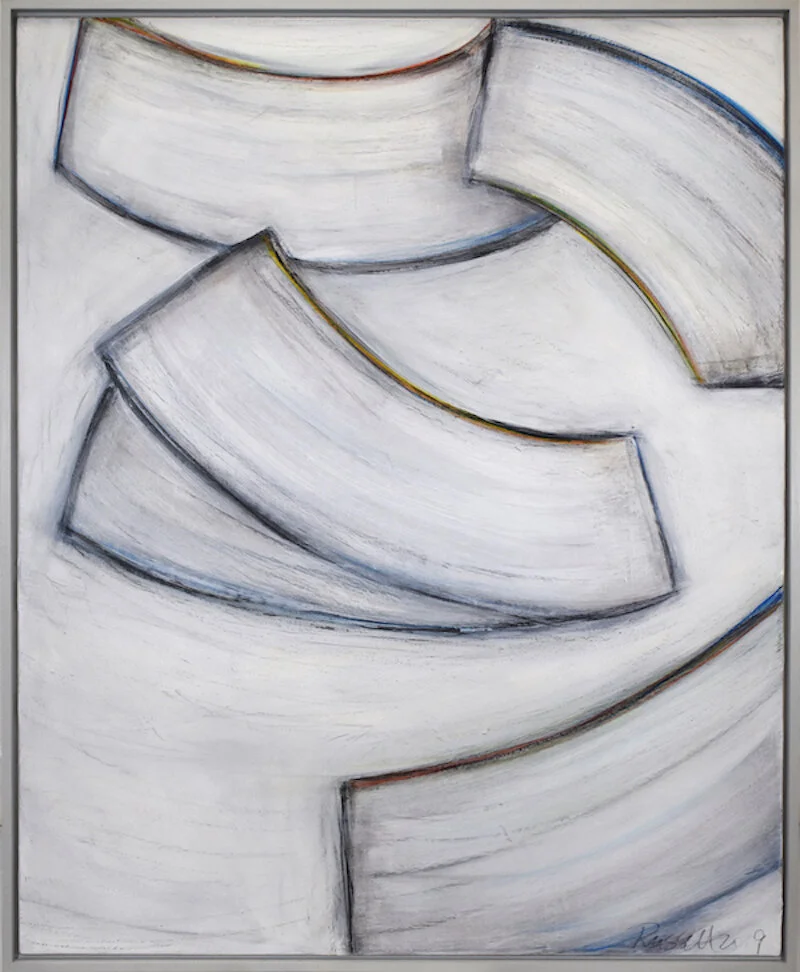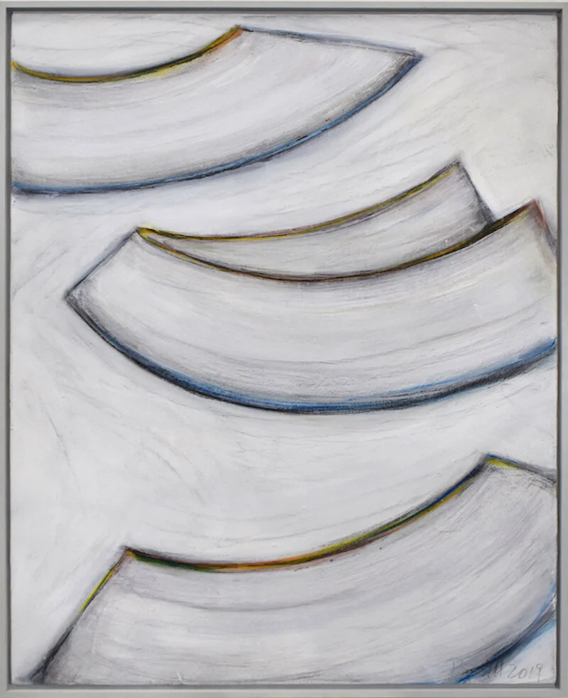 While still focusing on form, the artist conveys anticipation through hints of color at the very edge of form. The majority of this work was created in the brilliant white light of summer which shows up in her color palette.